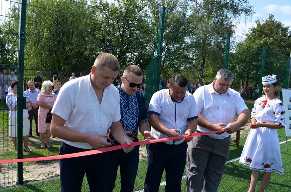 На відкриття сільського міні-стадіону разом із парламентарем приїхали перший заступник голови обласної парторганізації ВО «Батьківщина» Андрій Козюра, керівник Любомльського районного партосередку Ганна Сачук, її заступниця Валентина Мед.