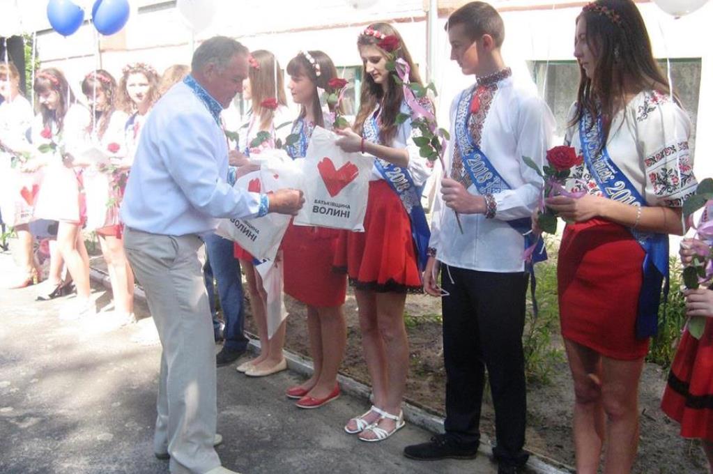 «Керівник фракції «Батьківщина» Ковельської райради Володимир Андросюк привітав із закінченням навчального року учнів Тойкутської загальноосвітньої школи і вручив усім 11-класникам подарунки. Депутат-«батьківщинівець» Володимир-Волинської райради Ярослав Кондисюк побував на урочистій лінійці в школі села Селець. Він побажав випускникам успішного початку самостійного життя й передав подарунки», – розповів перший заступник голови Волинської обласної парторганізації ВО «Батьківщина» Андрій Козюра.