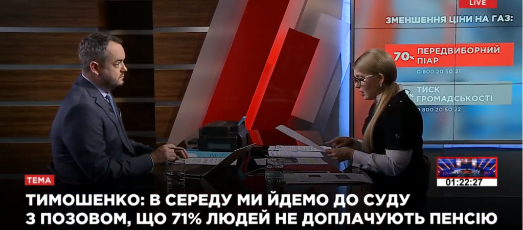 Про це заявила Юлія Тимошенко під час прямого ефіру на телеканалі NewsOne.