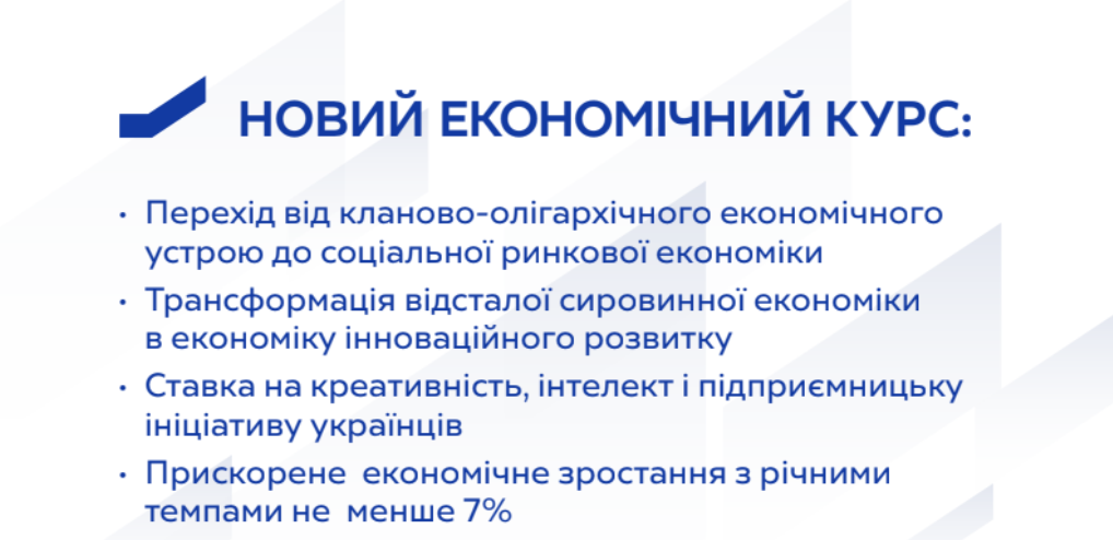 «Ключові елементи соціальної ринкової економіки – гармонійне поєднання вільного підприємництва з інтересами суспільства, рівні правила для всіх, «ні» монополіям, сильна правова держава, соціальні гарантії для кожного, розвиток малих форм підприємництва», – вважає лідер партії.